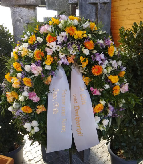 Trauerfeier und Beerdigungen: Wir sind als Fachbetrieb für den Friedhofsgartenbau, genau der richtige Ansprechpartner für jede Art von Trauerfloristik.•Urnen- oder Sargschmuck•Feierhallendekorationen•Grabdekorationen•Kränze, Gestecke etc.